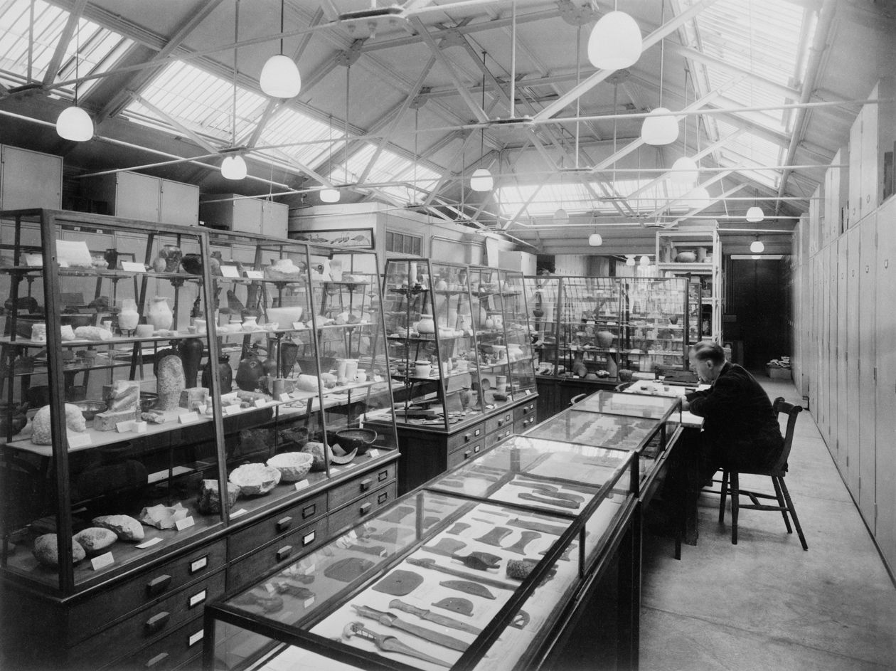 When the museum opened, the cases displaying the collection occupied the upper level of a whole wing in the Wilkins Building. Even with this space and with thousands of artefacts packed away in cupboards, the area was still cluttered with objects.